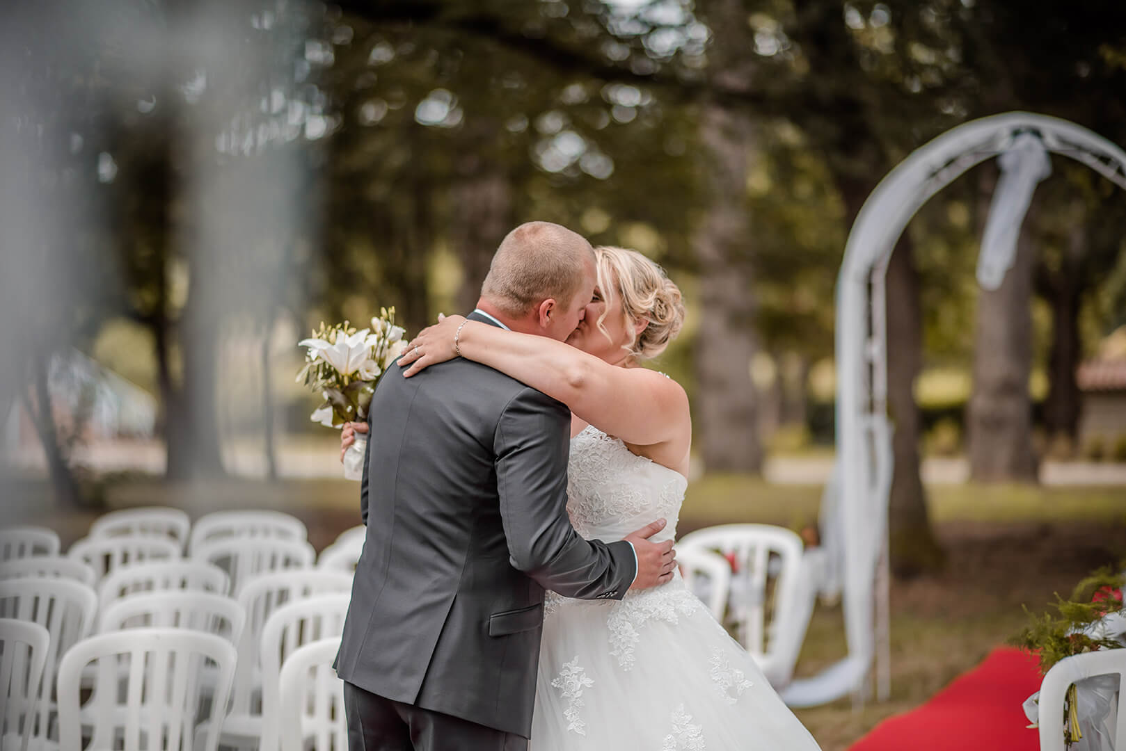 Après les préparatifs des mariés, chacun de leur côté - Charlotte, à la maison et Mathieu, chez ses parents - nous nous sommes rendus avec au Domaine de Balestat pour le first look : en tout petit comité (juste eux et moi), ils se sont alors découverts ! Après ce moment de surprise et de bonheur, nous avons réalisé les photos de couple, au calme, dans le parc du domaine. Un petit moment de pause et d'intimité avant de continuer le programme.
